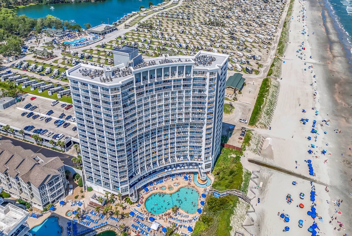 You will be a short elevator ride to the on-site amenities including: - Fire Pit - Playground - On-site ATM - Fitness Center - Arcade Game Room - Laundry Facilities using either coins or the New! ShinePay app - 21 Water Features including indoor & outdoor pools, hot tubs and lazy rivers open year round, heated seasonally - Family Fun Activities including arts & crafts, scavenger hunts, movie nights, seasonal beach & pool games, poolside DJ and so much more! Delicious on-site dining includes: - Oceanfront poolside Tiki Bar, open seasonally, located on the pool deck - Captain’s Nook, proudly serving Starbucks coffee & seasonal ice cream - Captain’s Cove restaurant known for their famous made-to-order omelets, waffles and lunch